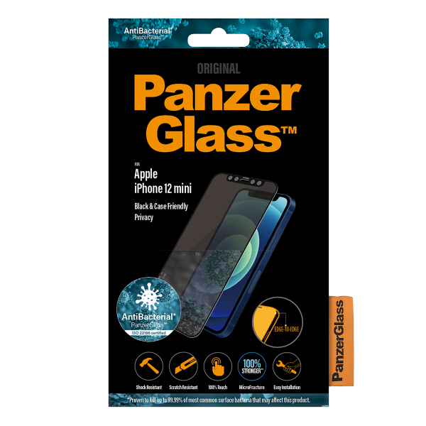 Το γυαλί προστασίας οθόνης με πλαίσιο PANZERGLASS Case Friendly Privacy για το iPhone 12 mini, είναι η ιδανική επιλογή σε όλα τα επίπεδα. Το εν λόγω γυαλί εξαιρετικής ανθεκτικότητας προσαρμόζεται άψογα και χωρίς κόπο, για να προφυλάξει την οθόνη από πτώσεις και αιχμηρά αντικείμενα, ενώ έχει υποβληθεί σε διαδικασία θέρμανσης και κάμψης για να ταιριάζει απόλυτα στις στρογγυλεμένες άκρες του αγαπημένου σου Smartphone. Έτσι, αποχαιρετάς μια για πάντα τις γρατζουνιές και κυρίως τις θραύσεις, ενώ κάτω από το γυαλί υπάρχει ένα φιλμ απορρόφησης κραδασμών και αντι-θρυμματισμού για την συγκράτηση θραυσμάτων. Επιπλέον, χάρη στην τεχνολογία privacy filter που διαθέτει, τα δεδομένα σου θα είναι πάντα ασφαλή και θα μένουν μακριά από αδιάκριτα βλέμματα, καθώς το περιεχόμενο που προβάλλεται στην οθόνη είναι ορατό μόνο στον χρήστη της συσκευής. Ακόμη, διαθέτει τεχνολογία Microfracture η οποία αυξάνει την αντοχή των άκρων του γυαλιού περισσότερο από 100%, σε σύγκριση με το PanzerGlass Super+. Τέλος, διαθέτει αντιβακτηριδιακή επίστρωση, η οποία καταστρέφει τα βακτηρίδια και τα μικρόβια σε ποσοστό 99,9%!
