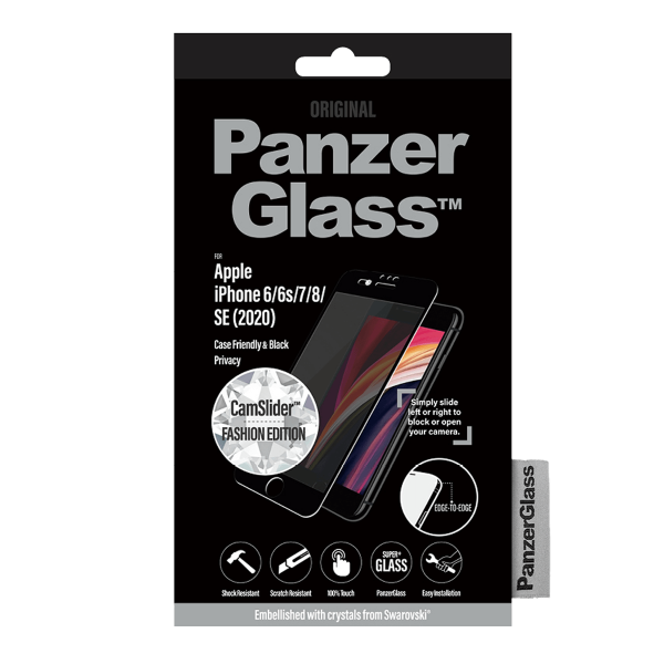Γυαλί προστασίας οθόνης με πλαίσιο PANZERGLASS Case Friendly Privacy CamSlider Swarovski για τα iPhone 6/ 6s/ 7/ 8/ SE 2020 | COSMOTESkip to main content
