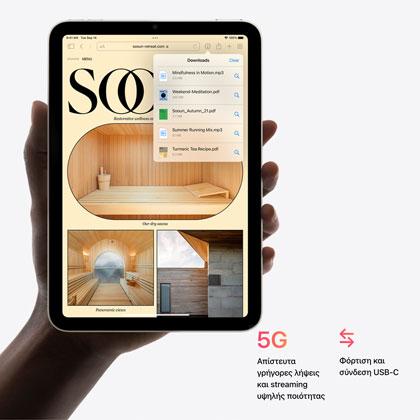 Υπέροχη σχεδίαση που καλύπτει όλη την πρόσοψη με οθόνη Liquid Retina 8.3 ιντσών που χωρά στην παλάμη του χεριού σου. Επιπλέον, το Apple Pencil τώρα συνδέεται μαγνητικά στην πλαϊνή πλευρά και είναι έτοιμο για ό,τι θέλεις να κάνεις αυθόρμητα και κάθε στιγμή.