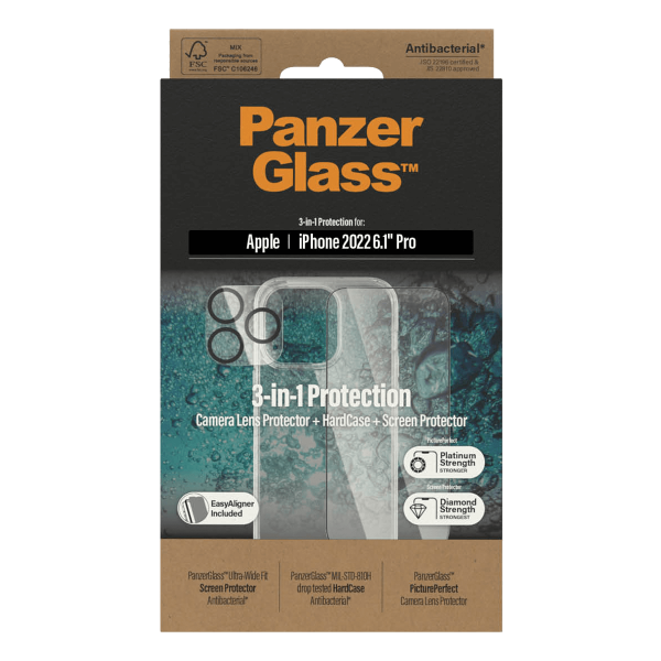 Το πακέτο γυαλίπροστασίαςκάμερας + διάφανηθήκηHardCase + γυαλίπροστασίαςοθόνηςμεπλαίσιο για iPhone 14 Pro PANZERGLASS δίνει την οριστική απάντηση στο ερώτημα για το πώς θα προστατέψεις αποτελεσματικά την συσκευή σου. Καταρχάς, το γυαλίπροστασίαςκάμερας είναι εξαιρετικά λεπτό και εφαρμόζει άψογα, ενώ σε περίπτωση θραύσης του δεν επηρεάζει την κάμερα, για προστασία χωρίς «θυσίες» σε επίπεδο λειτουργικότητας και ευχρηστίας. Ακόμη, η διάφανηθήκηHardCase διαθέτει ειδική επίστρωση HardCase, η οποία δεν επιτρέπει να εμφανιστούν κιτρινίλες, ενώ διαθέτει αντιβακτηριδιακή επίστρωση, η οποία καταστρέφει τα βακτηρίδια και τα μικρόβια σε ποσοστό 99,9%.