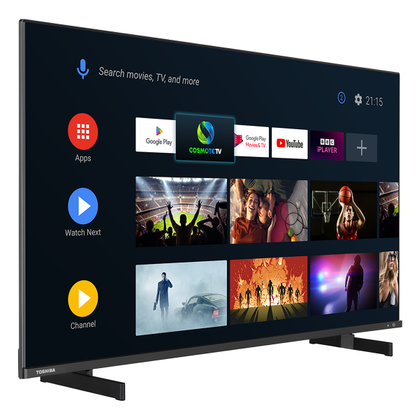 Η TOSHIBA QA5D63DG ενσωματώνει λειτουργικό Android TV και θα γίνει άμεσα το επίκεντρο της ψυχαγωγίας στο σπίτι σου. Έτσι, συνδέοντας την εν λόγω Smart TV στο δίκτυό σου, θα κατεβάσεις τις εφαρμογές που επιθυμείς από το Google Play. Παράλληλα, χάρη στην ενσωμάτωση του Chromecast, έχεις την ευχέρεια να προβάλλεις την εικόνα από τη φορητή συσκευή σου, όπως Smartphone και Tablet, στη μεγάλη οθόνη της τηλεόρασής σου, ενώ υποστηρίζει και φωνητικές εντολές μέσω Google Assistant (Τηλεχειριστήριο με της φωνητικές εντολές δεν περιλαμβάνεται στη συσκευασία) για να κάνει ακόμα πιο απλή τη ζωή σου.
