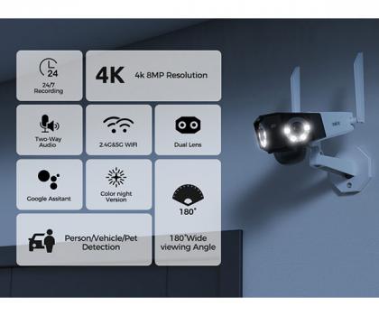 Η REOLINK outdoor camera Wi-Fi duo 2 εξωτερική κάμερα είναι η ιδανική κάμερα καθώς είναι εξωτερικού και εσωτερικού χώρου, για να συνδυάσεις κορυφαίο επίπεδο ασφάλειας και ευχρηστίας. Η τοποθέτησή της στο σημείο που επιθυμείς πραγματοποιείται γρήγορα και απλά, ενώ αποδεικνύεται εξαιρετικά ανθεκτική με προστασία σε σκόνη και νερό (πιστοποίηση IP66), ώστε να μην έχεις καμία ανησυχία για την καλή λειτουργία της ακόμα κι όταν βρέχει. Επιπλέον, είναι εξοπλισμένη με δύο φακούς, παρέχοντάς σου ευρεία γωνία θέασης 1800 , για να μην σου ξεφεύγει τίποτα.