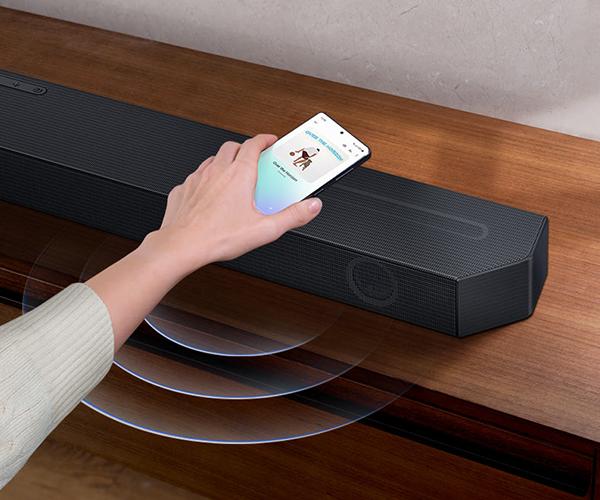 Η SAMSUNG HW-Q600C Soundbar συνδέεται ενσύρματα μέσω HDMI (συμβατότητα HDMI eARC) ή ασύρματα μέσω Bluetooth. Κι όλα αυτά συνδυάζονται με έξυπνες λειτουργίες, για παράδειγμα το streaming μουσικής από το Samsung Smartphone σου περνάει στο επόμενο επίπεδο μέσω του Tap Sound με την τοποθέτηση της συσκευής πάνω στη Soundbar!