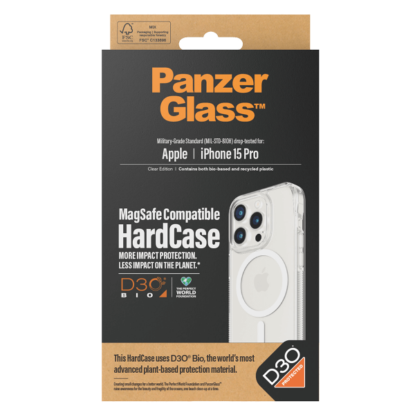 Η διάφανη θήκη PANZERGLASS hard case MagSafe για iPhone 15 Pro όχι μόνο θα προσφέρει προστασία στην συσκευή σου αλλά και στο περιβάλλον. Φτιαγμένη με D30 Bio, το πιο προηγμένο φυτικό προστατευτικό υλικό στον κόσμο, το οποίο εμπιστεύεται την προστασία των στρατιωτικών ελίτ δυνάμεων, έρχεται για να προστατέψει την συσκευή σου από σκόνη, πτώσεις και γρατζουνιές.