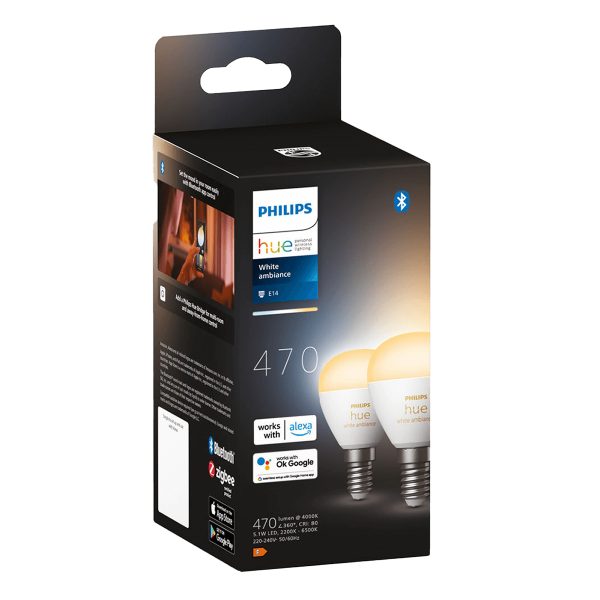 Ο PHILIPS Hue White έξυπνος λαμπτήρας luster 5.1W E14(2 Τεμάχια) θα ομορφύνει την καθημερινότητά σου. Με ρύθμιση έντασης από έντονο φως ημέρας μέχρι χαμηλά φώτα νύχτας, σου επιτρέπει να γεμίσεις το σπίτι σου με το ιδανικό επίπεδο θερμού φωτισμού όποτε το χρειάζεσαι.