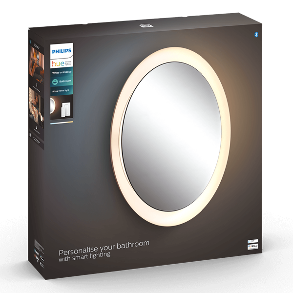 Κάνε τις πρωινές και τις βραδινές συνήθειές σου πολύ πιο όμορφες με τον φωτισμένο καθρέφτη καλλωπισμού Adore, έναν μεγάλο στρογγυλό καθρέφτη μπάνιου στο κέντρο ενός δακτυλίου από θερμό έως ψυχρό λευκό φως. Ο PHILIPS Hue White Ambiance φωτιζόμενος καθρέφτης bathroom adore mirror 27W 24V + Hue διακόπτης dimmer προσφέρει λευκό φωτισμό διαφόρων αποχρώσεων, από θερμό έως ψυχρό φως.