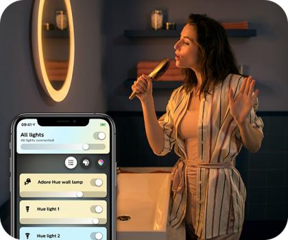 Σύνδεσε τον PHILIPS Hue White Ambiance φωτιζόμενο καθρέφτη bathroom adore mirror 27W 24V με το Philips Hue Bridge (πωλείται ξεχωριστά) και ανακάλυψε τις ατελείωτες δυνατότητες που μπορεί να σου προσφέρει. Αρχικά, μπορείς να ελέγξεις τα φώτα σου από το Smartphone ή το Tablet σου με την εφαρμογή Philips Hue σε iOS και Android συσκευές. Έτσι μπορείς να ελέγχεις τα φώτα του σπιτιού από απόσταση, όπου και αν βρίσκεσαι για να μην έχεις κανένα άγχος.
