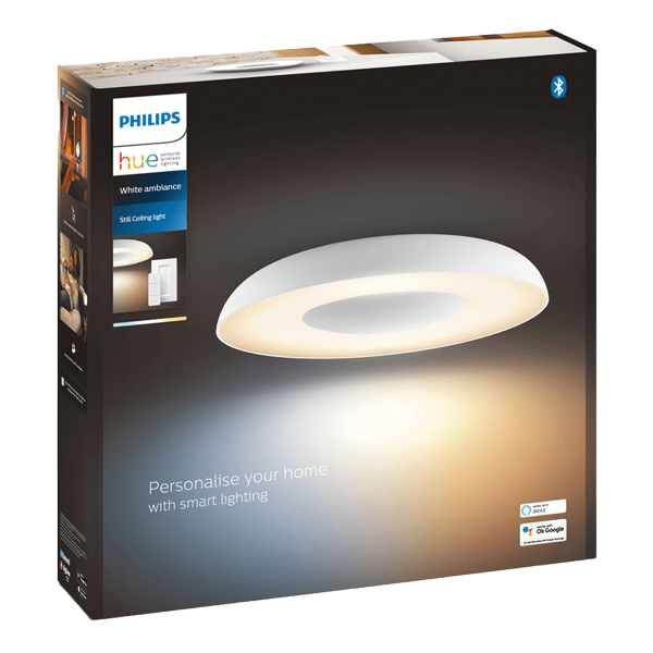 Ο μοναδικός στρογγυλός σχεδιασμός του PHILIPS Hue White Ambiance έξυπνου φωτιστικού οροφής Still παρέχει χιλιάδες αποχρώσεις θερμού έως ψυχρού λευκού φωτός για οποιαδήποτε ώρα της ημέρας. Προσφέρει λευκό φωτισμό διαφόρων αποχρώσεων, από θερμό έως ψυχρό φως. Χάρη στη δυνατότητα πλήρους ρύθμισης έντασης φωτός από έντονα μέχρι χαμηλά φώτα νύχτας, μπορείς να ρυθμίσεις με ακρίβεια τα φώτα σου στην ιδανική απόχρωση και φωτεινότητα φωτισμού ανάλογα με τις καθημερινές σου ανάγκες. Περιλαμβάνει τον hue διακόπτης dimmer, με τον οποίο μπορείς να ρυθμίζεις το επίπεδο φωτεινότητας μέσω αυτού, ενώ αποδεικνύεται απόλυτα εύχρηστος, καθώς έχεις τη δυνατότητα να τον χρησιμοποιήσεις και ως χειριστήριο (λειτουργεί με μπαταρίες) για να το έχεις διαρκώς δίπλα σου!