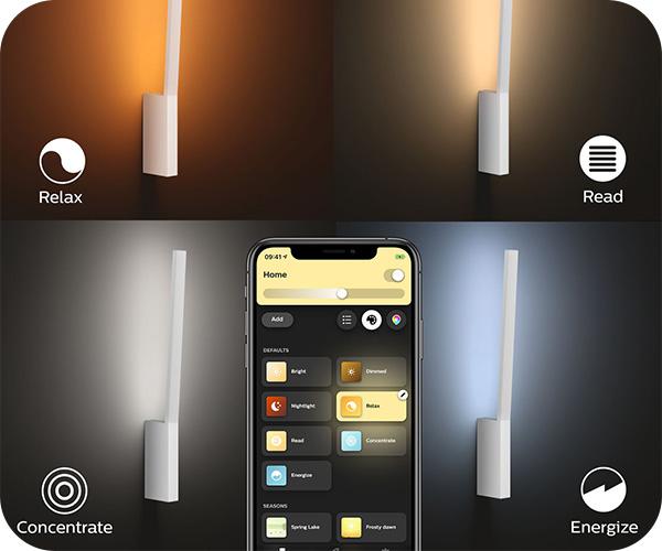 Μεταμόρφωσε το σπίτι σου με περισσότερα από 16 εκατομμύρια χρώματα, δημιουργώντας άμεσα την ιδανική ατμόσφαιρα για κάθε περίσταση και δραστηριότητα. Με ένα απλό άγγιγμα ενός κουμπιού, μπορείς να δημιουργήσεις μια γιορτινή διάθεση για ένα πάρτι, να μετατρέψεις το καθιστικό σε ένα κινηματοθέατρο, με φωτισμό που ταιριάζει στην ταινία που παρακολουθείς, ή ακόμα και να αναδείξεις τη διακόσμηση του σπιτιού σου με χρωματικούς τόνους που ταιριάζουν στη διάθεσή σου.