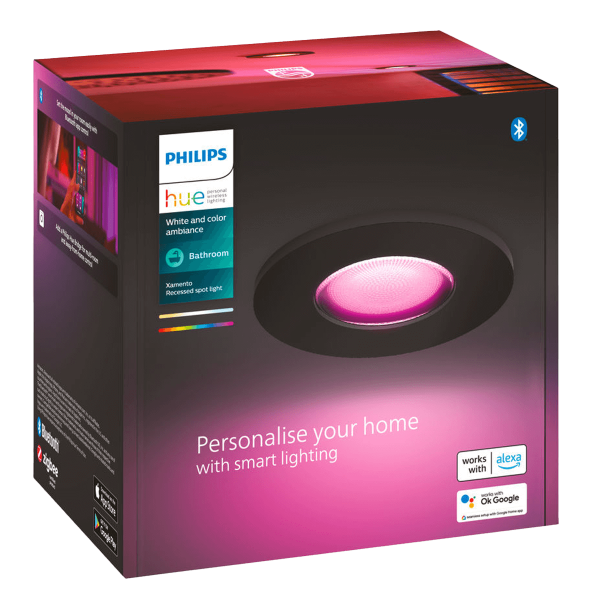Το χωνευτό σποτ Hue White and Color Ambiance Xamento της Philips συνδυάζεται αρμονικά με την έξυπνη τεχνολογία του συστήματος Hue, επιτρέποντας τον έλεγχο του φωτισμού από οποιοδήποτε μέρος του σπιτιού μέσω smartphone ή φωνητικών εντολών. Επιπλέον, με την εφαρμογή Hue Bluetooth, μπορείς να ελέγχεις τα έξυπνα φώτα Hue που έχεις εγκατεστημένα σε ένα δωμάτιο του σπιτιού σου. Πρόσθεσε έως και 10 έξυπνα φώτα και έλεγξε τα όλα μαζί, με το πάτημα ενός πλήκτρου του κινητού σου. Απαραίτητη προϋπόθεση για να συνδεθούν οι έξυπνες συσκευές της Philips HUE στο Wi-Fi είναι να υπάρχει το Hue Bridge.