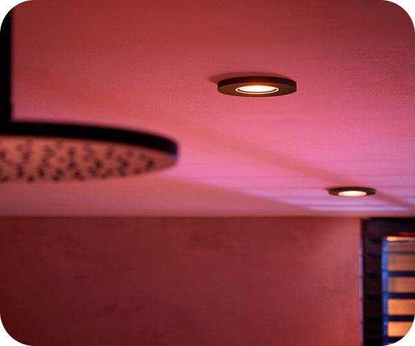 Δημιούργησε την ιδανική ατμόσφαιρα στο μπάνιο επιλέγοντας ανάμεσα σε 50.000 αποχρώσεις. Με το πάτημα ενός κουμπιού, μπορείς να χαλαρώσεις στη μπανιέρα σου με ένα απαλό ροζ φως να σε περιβάλλει ή να φωτίσεις το μπάνιο σου με μια έντονη μωβ απόχρωση, για να κάνεις την προετοιμασία της βραδινής σου, εξόδου με φίλους ακόμα πιο διασκεδαστική.