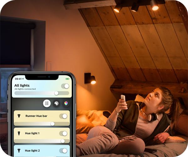 Με την εφαρμογή Hue Bluetooth, ο έλεγχος είναι στα χέρια σου. Μπορείς να προσθέσεις έως και 10 έξυπνα φώτα και να τα ελέγξεις όλα μαζί με ένα απλό άγγιγμα στην κινητή σου συσκευή. Επιπλέον, με αυτήν την εφαρμογή, μπορείς να προσαρμόσεις το χρώμα, τη φωτεινότητα και την ατμόσφαιρα του φωτισμού σου με άνεση. Απλώς άνοιξε την εφαρμογή, επέλεξε τα φώτα που θέλεις να ελέγξεις και προσάρμοσε τις ρυθμίσεις σου με ένα μόνο άγγιγμα.