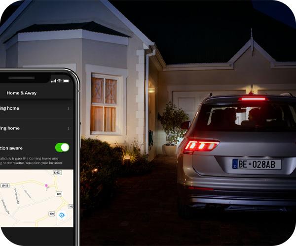 Η λειτουργία αυτόματης ενεργοποίησης και απενεργοποίησης χρησιμοποιώντας τους αισθητήρες εξωτερικών χώρων Philips Hue, είναι μια εξαιρετική λύση για τη δημιουργία ενός άνετου και ασφαλούς περιβάλλοντος όταν φτάνεις στο σπίτι ή όταν φεύγεις από αυτό. Ρυθμίζοντας την εφαρμογή Hue στις λειτουργίες "Home" ή "Away", μπορείς να ενεργοποιείς ή να απενεργοποιείς όλα τα φώτα αυτόματα ανάλογα με την παρουσία σου στο σπίτι. Επιπλέον, η λειτουργία γεωεντοπισμού μπορεί να ενεργοποιήσει αυτόματα τους φωτεινούς πόρους όταν φτάνεις στον προορισμό σου ή να τους απενεργοποιήσει όταν φεύγεις.