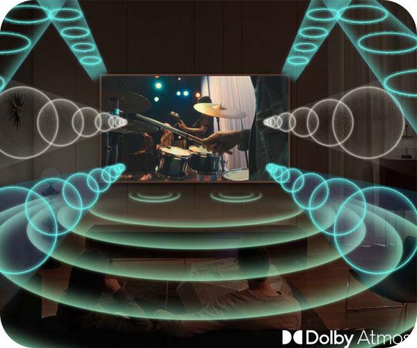 Όσο για τον ήχο, αναλαμβάνει η υποστήριξη Dolby Atmos για ακρόαση κινηματογραφικών προδιαγραφών. Επιπρόσθετα, μέσω του Q-Symphony τα ηχεία της τηλεόρασης και του soundbar λειτουργούν ταυτόχρονα για ένα αποτέλεσμα πέρα από τα καθιερωμένα (διαθέσιμο μόνο με συμβατά soundbars)!