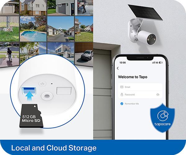 Η TP-LINK Tapo C425 διαθέτει υποδοχή για κάρτα μνήμης MicroSD χωρητικότητας έως 512GB για απευθείας εγγραφές, ενώ υπάρχει και η δυνατότητα αποθήκευσης σε χώρο cloud μέσω του Tapo Care για να καλύψει πλήρως τις ανάγκες σου. Επίσης, το ηλιακό πάνελ TP-LINK Tapo A200 κάνει τη διαφορά, καθώς τροφοδοτεί την μπαταρία και συνδέεται με την κάμερά σου με χαρακτηριστική ευκολία και πληθώρα επιλογών (καλώδιο φόρτισης 4 μέτρων). Κατασκευασμένο από κυψέλες σιλικόνης κορυφαίας ποιότητας, συλλαμβάνει την ηλιακή ενέργεια και παρέχει αδιάκοπη τροφοδοσία έως 4.5W, για την ακρίβεια μόλις 45 λεπτά τυπικής ηλιοφάνειας καθημερινά είναι αρκετά ώστε η κάμερά σου να έχει διαρκώς την απαιτούμενη ενέργεια!