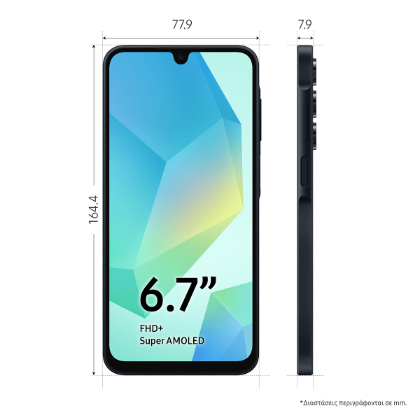 Βυθίσου στο αγαπημένο σου περιεχόμενο μέσα από την FHD+ Super AMOLED οθόνη 6,7 ιντσών του SAMSUNG Galaxy A16 5G, με εκπληκτική ευκρίνεια και ζωντανά χρώματα. Με πάχος μόλις 7.9mm χωράει στην τσέπη σου και ταιριάζει στην καθημερινότητά σου. Συνδυάζει εκλεπτυσμένο σχεδιασμό και άνετη φορητότητα.
