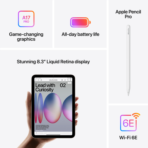 Το iPad mini είναι απίστευτα φορητό και ισχυρό, με το σούπερ γρήγορο A17 Pro chip και την οθόνη Liquid Retina 8,3 ιντσών. Και συνεργάζεται με το Apple Pencil Pro, για να μπορείς να μελετάς, να εργάζεσαι, να παίζεις και να δημιουργείς όπου κι αν βρίσκεσαι.