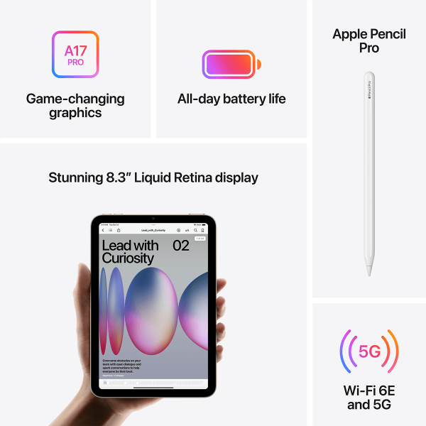 Το iPad mini είναι απίστευτα φορητό και ισχυρό, με το σούπερ γρήγορο A17 Pro chip και την οθόνη Liquid Retina 8.3 ιντσών. Και συνεργάζεται με το Apple Pencil Pro, για να μπορείς να μελετάς, να εργάζεσαι, να παίζεις και να δημιουργείς όπου κι αν βρίσκεσαι