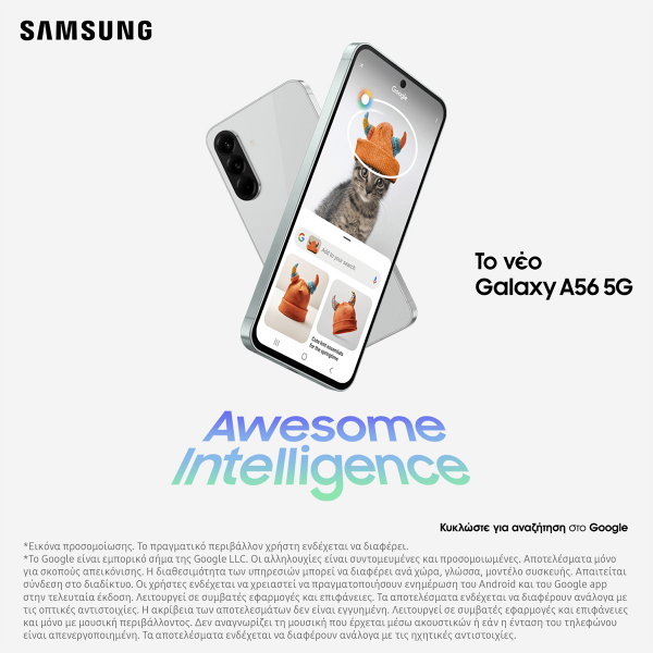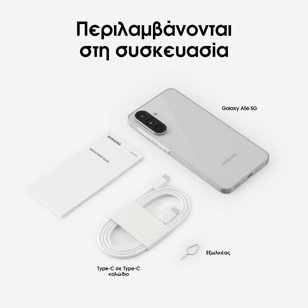 Το SAMSUNG Galaxy A56 5G είναι το Smartphone που σου προσφέρει κορυφαία ταχύτητα, εντυπωσιακό design και δυνατότητες που θα σε συναρπάσουν! Από τη συναρπαστική Super AMOLED οθόνη 6,7 ιντσών μέχρι τον ισχυρό οκταπύρηνο επεξεργαστή, κάθε στιγμή γίνεται πιο απολαυστική.