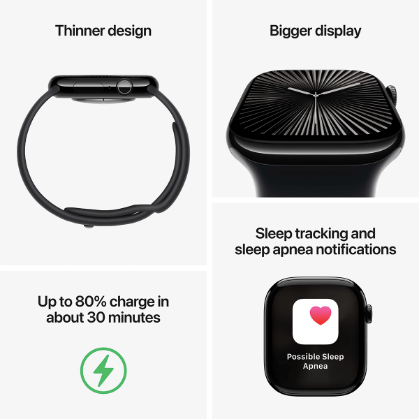 Το APPLE Watch Series 10 είναι το πιο λεπτό Apple Watch που έχει υπάρξει! Επανασχεδιασμένο σχεδόν σε κάθε πτυχή του, συμπεριλαμβανομένων των SiP, Digital Crown, ηχείου, μπροστινού κρυστάλλου και κεραίας. Όλα αυτά μαζί συνθέτουν ένα Smartwatch που είναι γεμάτο καινοτομίες.