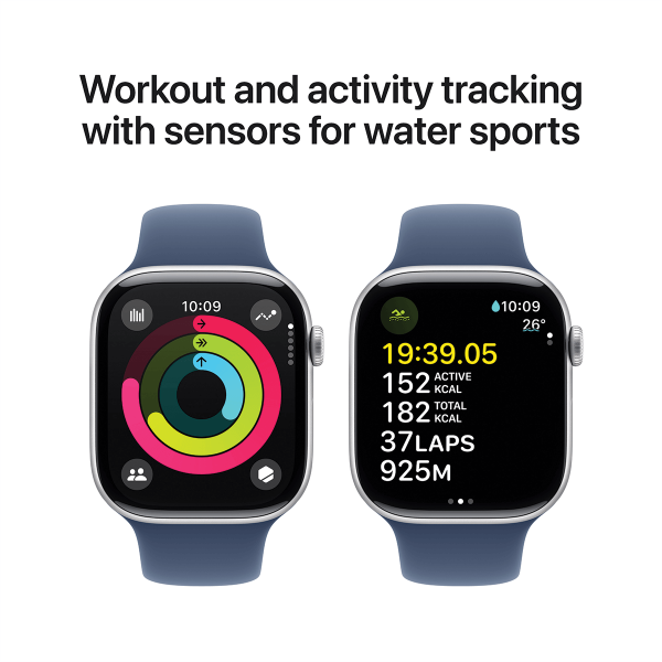 Το APPLE Watch Series 10 σε παρακινεί να μένεις δραστήριος, παρακολουθεί όλες τις προπονήσεις σου και σου δίνει τις μετρήσεις που χρειάζεσαι. Ο νέος αισθητήρας θερμοκρασίας νερού παρέχει περισσότερες πληροφορίες για τις προπονήσεις κολύμβησής σου. Και ένας καινούργιος αισθητήρας βάθους κάνει το APPLE Watch Series 10 ιδανικό για κολύμβηση και κατάδυση με αναπνευστήρα.