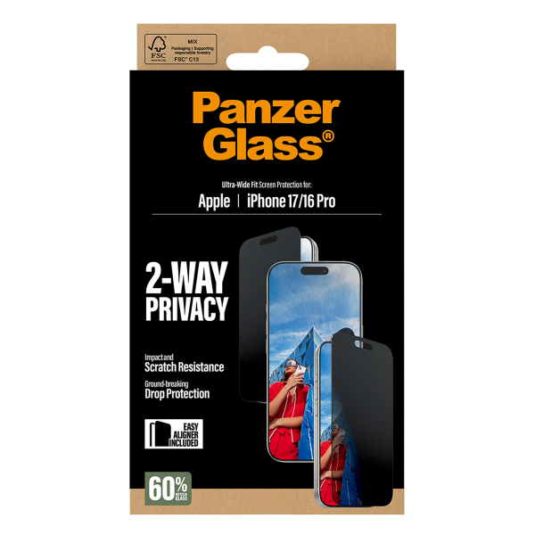 Το γυαλί προστασίας οθόνης με πλαίσιο PANZERGLASS Ultra - Wide Fit 2-Way Privacy για iPhone 17/ 16 Pro προστατεύει την οθόνη σου από γρατσουνιές, τυχαία χτυπήματα και πτώσεις. Κάθε φορά που το χρησιμοποιείς, ξέρεις ότι η οθόνη σου παραμένει άθικτη. Παράλληλα, παρατείνει τη διάρκεια ζωής του τηλεφώνου σου, μειώνοντας την ανάγκη για νέα παραγωγή και συμβάλλοντας σε ένα πιο βιώσιμο μέλλον.