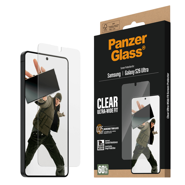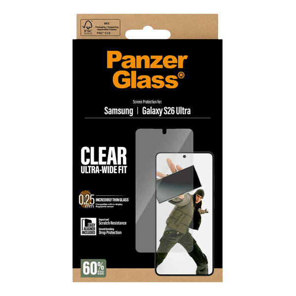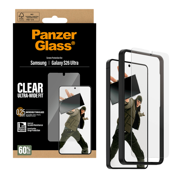 Το PANZERGLASS Ultra-Wide Fit για SAMSUNG Galaxy S26 Ultra προσφέρει κορυφαία προστασία οθόνης με έμφαση στη βιωσιμότητα και την απόλυτη καθαρότητα εικόνας.