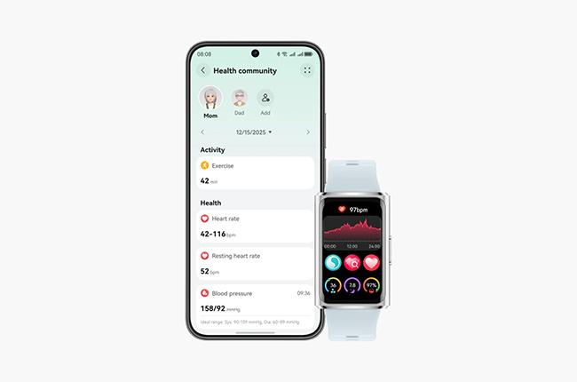 Σύνδεσε τα μέλη της οικογένειάς σου στην κοινότητα υγείας της εφαρμογής Huawei Health και παρακολούθησε καρδιακό ρυθμό, SpO₂ και καθημερινά βήματα με μια ματιά. Κράτα πλήρη εικόνα των βασικών μετρήσεων που σε ενδιαφέρουν, εύκολα και άμεσα.